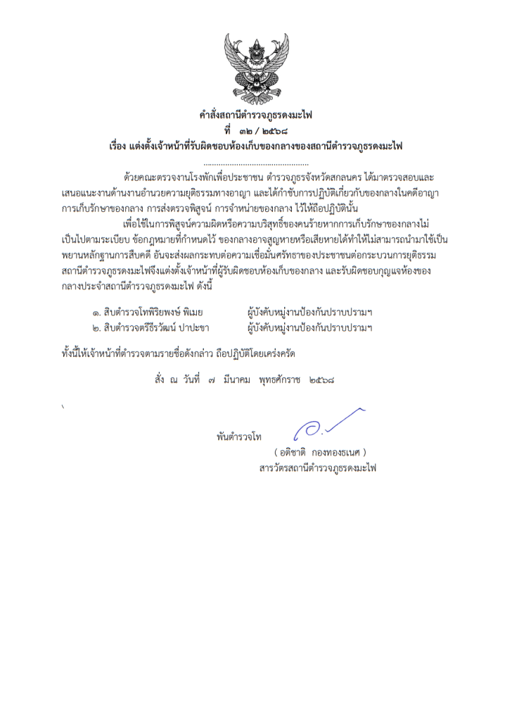 023 การจัดการทรัพย์สินของราชการ ของบริจาค การจัดเก็บของกลางและการรายงานผล