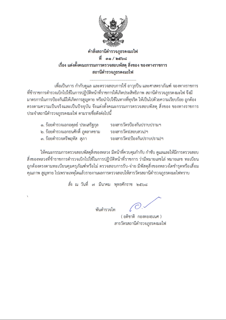 -ตรวจสอบและตรวจนับอาวุธยุทธภัณฑ์ของสถานีตำรวจเพื่อให้มีความพร้อมต่อการใช้งานในภารกิจประจำวัน